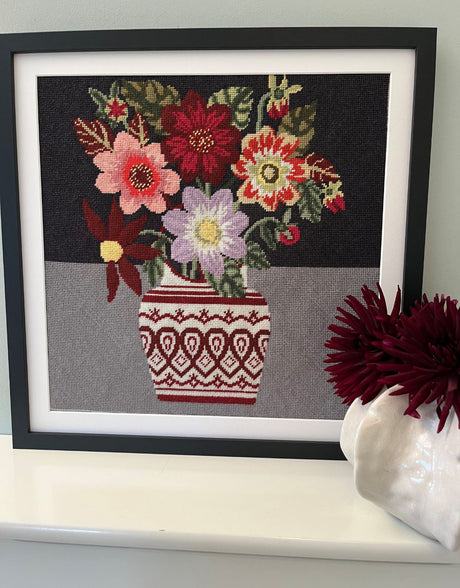 Burgundy Dahlia Tapestry Printed Canvas Kit, Vanessa Bowman