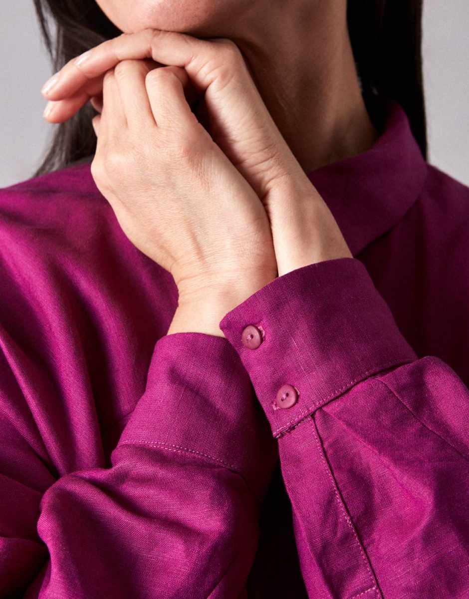 LA Chemise is a loose-fit boyfriend shirt. It has an oversized maxi cut embellished with feminine details that give it an assertive beau.