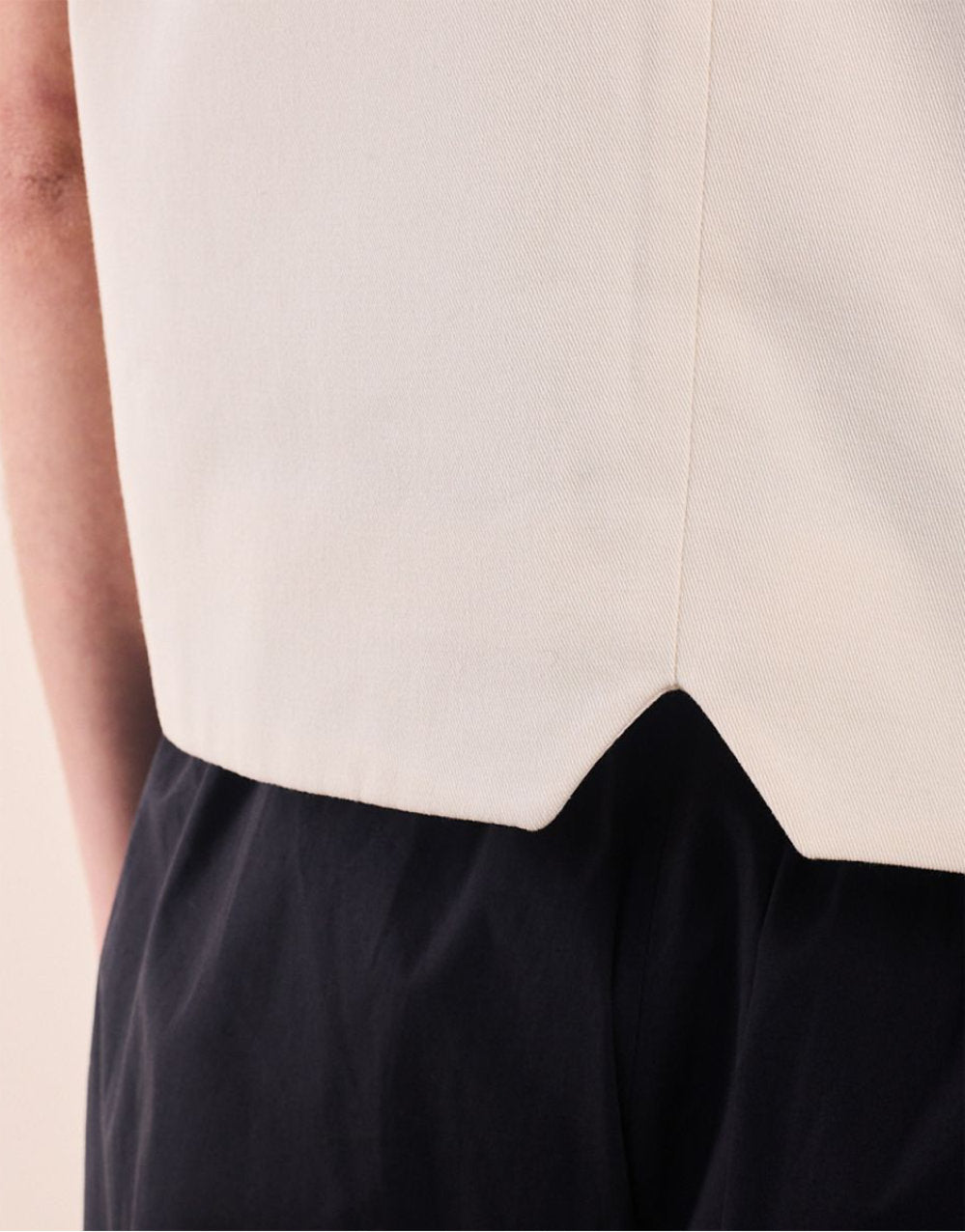 - Two simple welt pockets, a nod to our grandmothers’ blazers