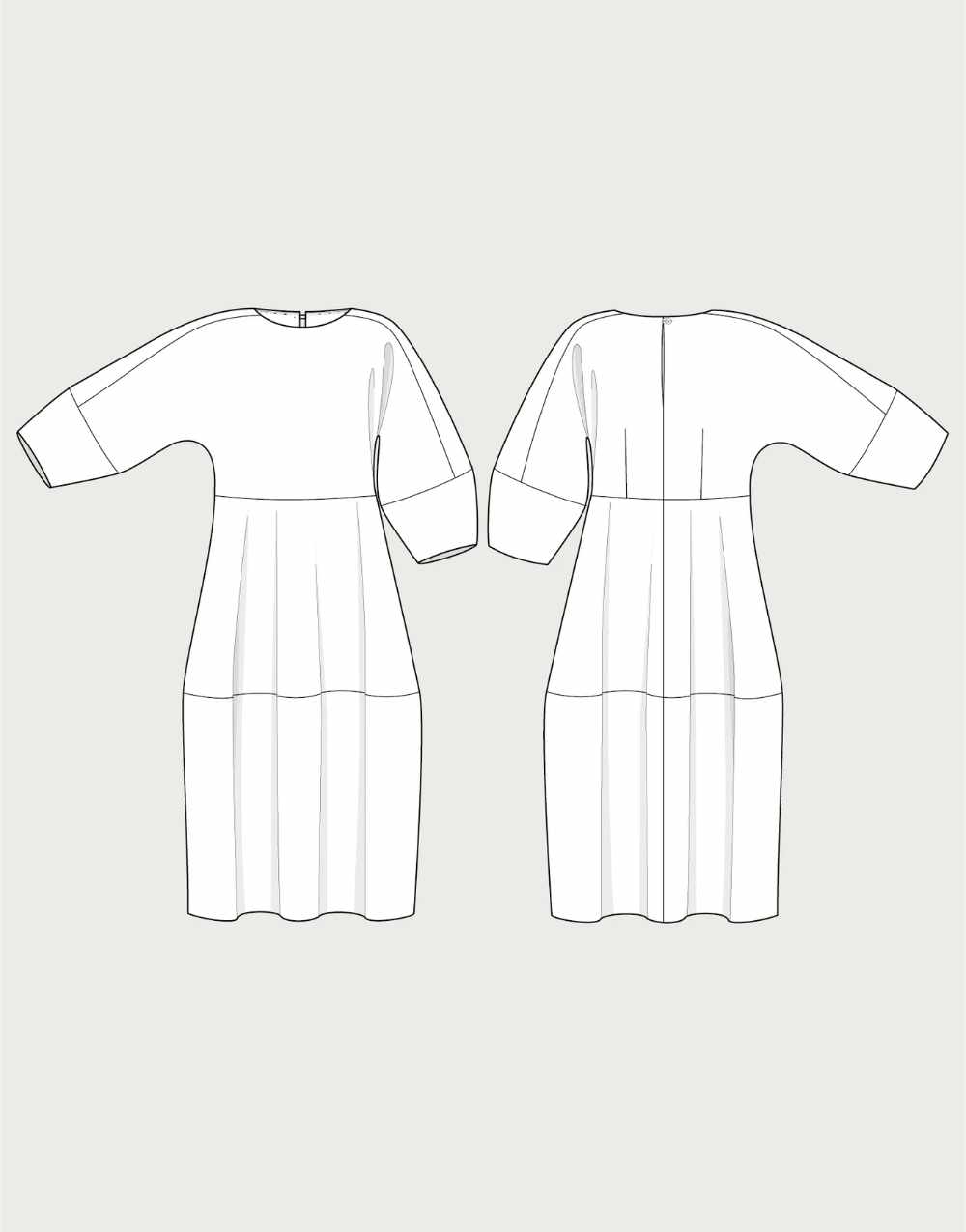 Barrel dress offers ample space and an intriguing silhouette. It comes with a midi skirt with a barrel-like shape and can be sewn with sculpted sleeves that complement the skirt's form, or it can be sleeveless. The sleeveless version is a perfect addition to your summer wardrobe!