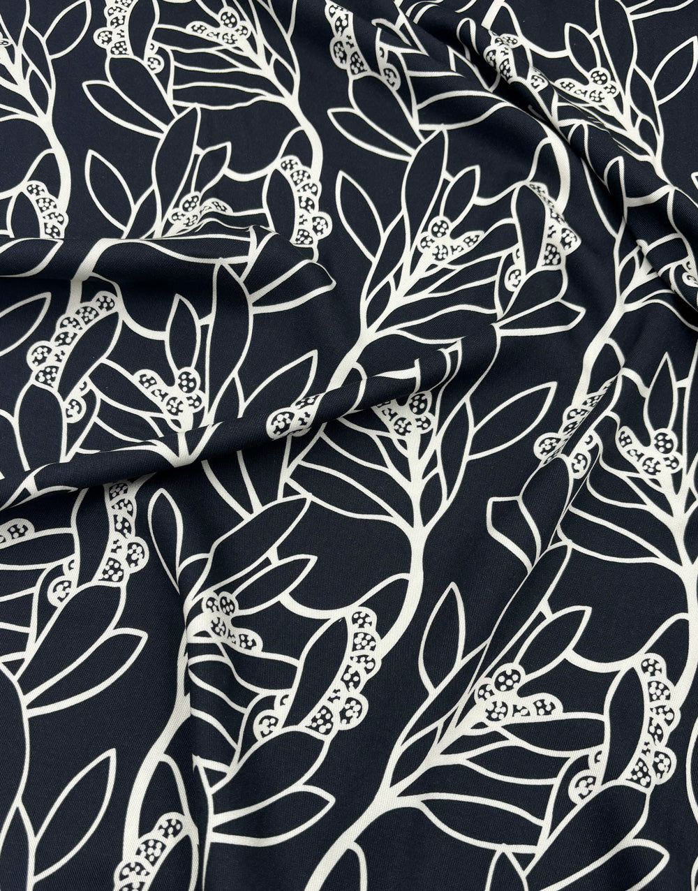 Black & Cream Leafscape Light & Lush Viscose Fabric