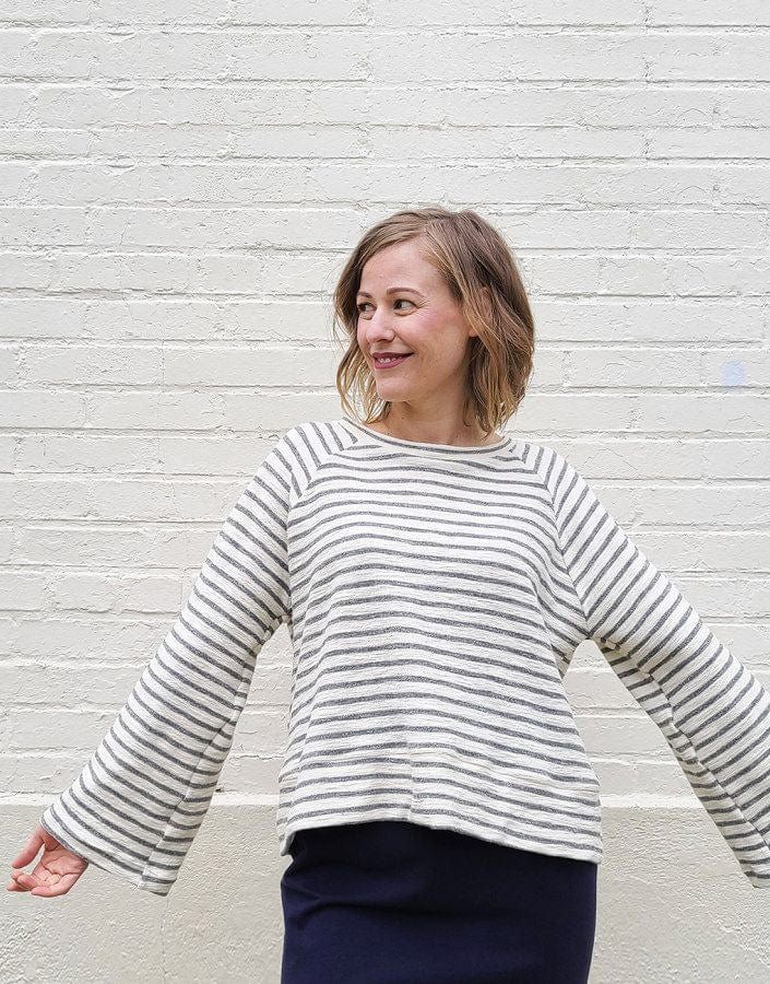 This is two patterns in one! The Cosmos Sweatshirt is an oversized raglan knit top designed with comfort and style in mind. This generous fitting sweatshirt is a quick and easy make and features a wide bottom band that lands just above the hip.