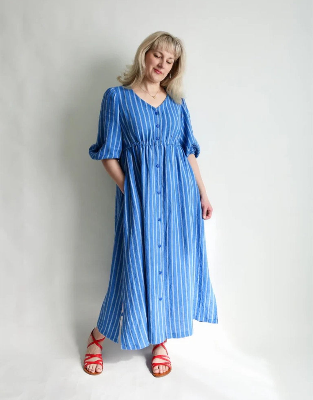 Sapphire works beautifully as a breezy top styled with shorts and sandals for summer days, or as a statement maxi dress with bold gathered sleeves and a swishy skirt made for twirling. A design that’s as at home for everyday wear as it is for special evenings out.