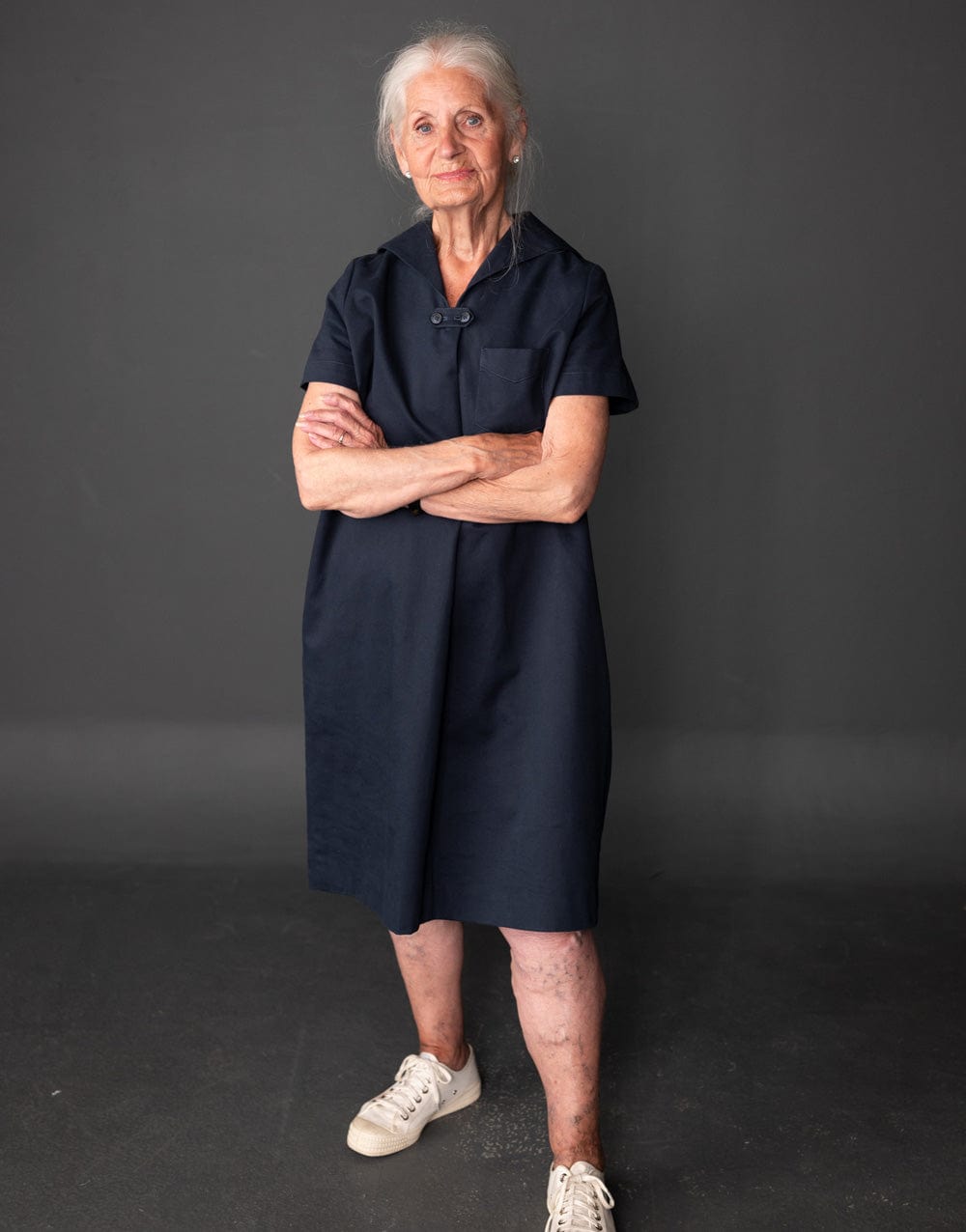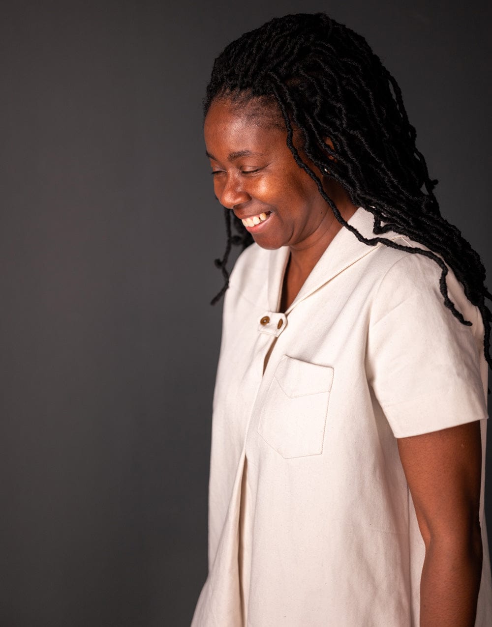 A loose fitting dress or top with front and back pleats, side in-seam pockets (dress only), breast pocket and a sailor collar. Perfect attire for any board walk.