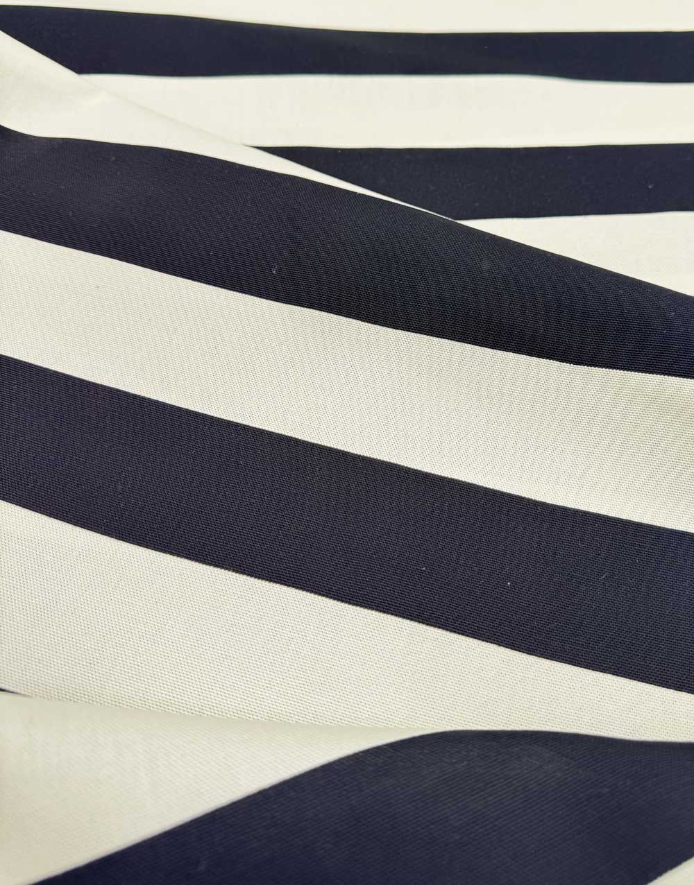 This cotton canvas fabric features bold, thick stripes in a monochrome colour combination, offering a crisp and modern look. With its sturdy yet soft texture, this durable woven fabric is ideal for both fashion and home décor projects.