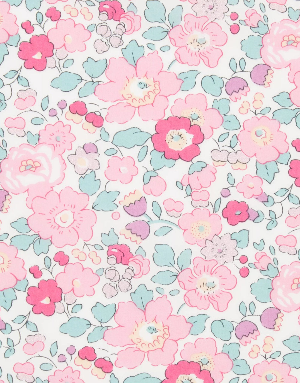 Betsy is a small, stylised floral created in 1933 by former Liberty designer ‘D.S.’, who was behind many iconic Liberty prints of the era. Appearing as part of the Classics Tana Lawn™ collection since 1982, Betsy features intricately shaded petals in soft jewel-tone colourways, enhanced with subtle bursts of metallic colour.