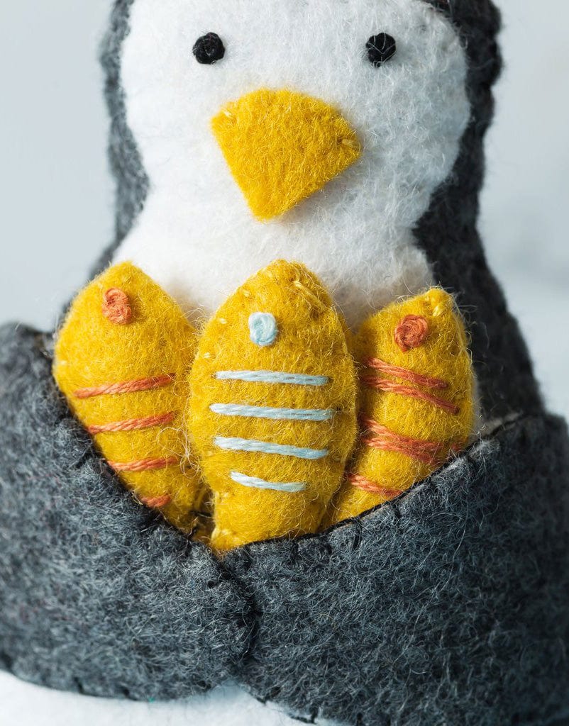 This super cute Penguin mini craft kit contains everything you need to make one felt hanging decoration. He's just back from fishing and is clutching his prize haul of tasty golden fish. Double the happiness by making the Penguin yourself and giving it as a present!