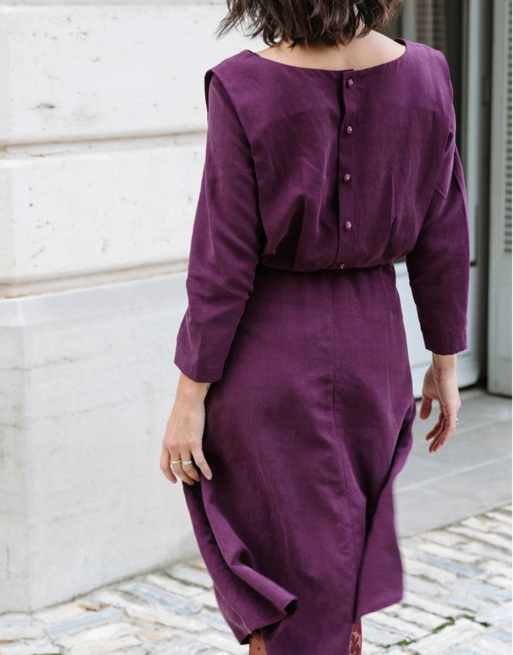 Suggested Fabrics: A light to medium fabric, between 100 and 200 g/m², which presses well to facilitate sewing pleats and necklines: poplin, dupioni, fine jacquard, chambray, light denim, in cotton, viscose, linen or tencel. Avoid fabrics that are too fluid or stretchy, as they may distort the pleats and neckline.