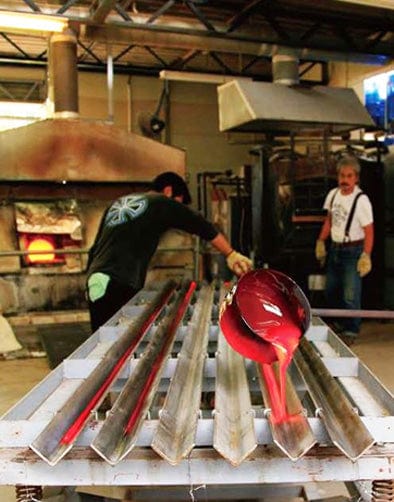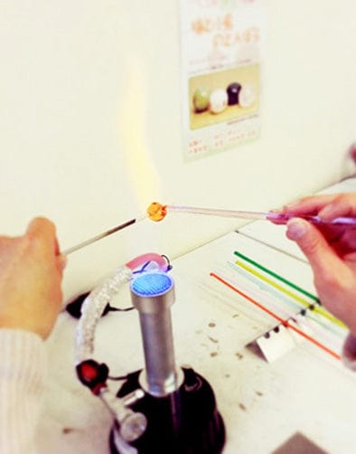 Mysterious "tombo-dama" (glass beads), their production method already established by the Nara period (which began in 710 A.D.), using closely-guarded techniques. It is said that in the Edo period (1603-1868 A.D.), with much trade arriving from China and Europe, glass-making techniques from abroad were also entering the stream, and the production of "tombo-dama" became even more varied. Cohana's marking pins are handmade with care, one-by-one, using tombo-dama techniques. The floral designs for these tombo-dama are called "millefiori," meaning "a thousand flowers." The components are heated in the flame from a burner, and carefully shaped. The pins are made in Hiroshima, an area famous for their production, so they sew smoothly.