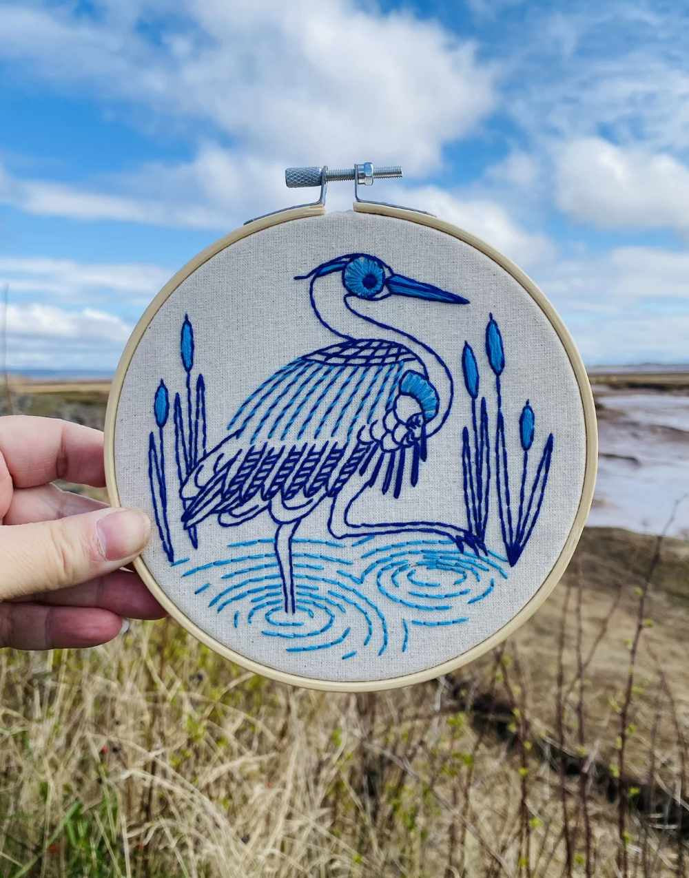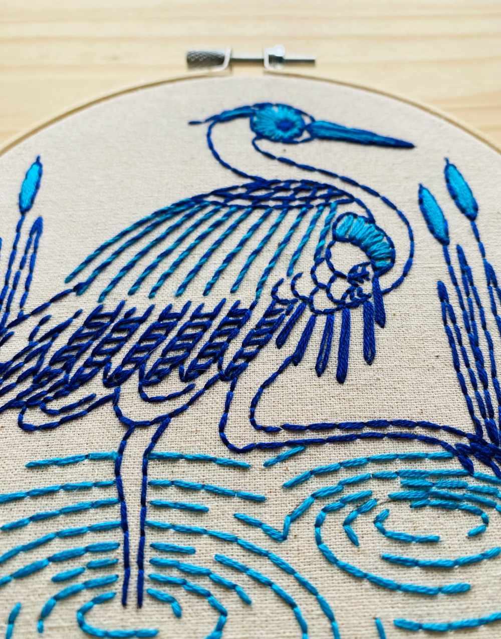 Blue Heron Embroidery Kit, Hook Line & Tinker