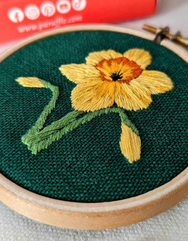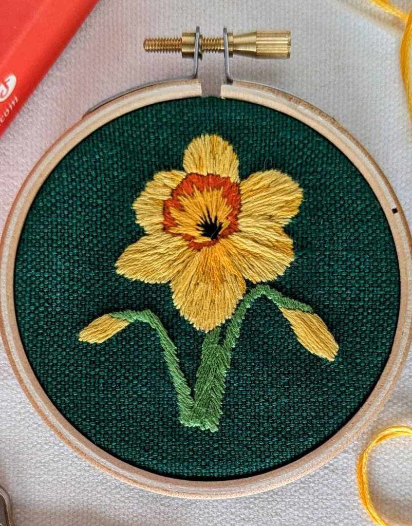 Is any flower more joyous than a gorgeous, golden daffodil? The bright yellows and oranges make this mini daffodil embroidery kit the perfect project to remind you of Spring.