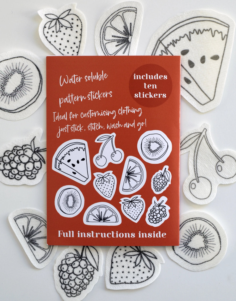 Each pack contains a selection of illustrations printed on water-soluble fabric stabiliser, with 10 standalone fabric stickers included in each pack.