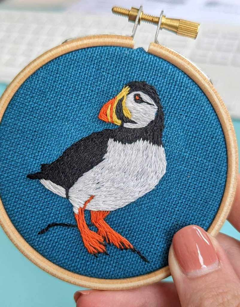 Feather your nest with our Puffin Embroidery Kit! This fun beginner level kit has everything you need to create a puffin-perfect design: