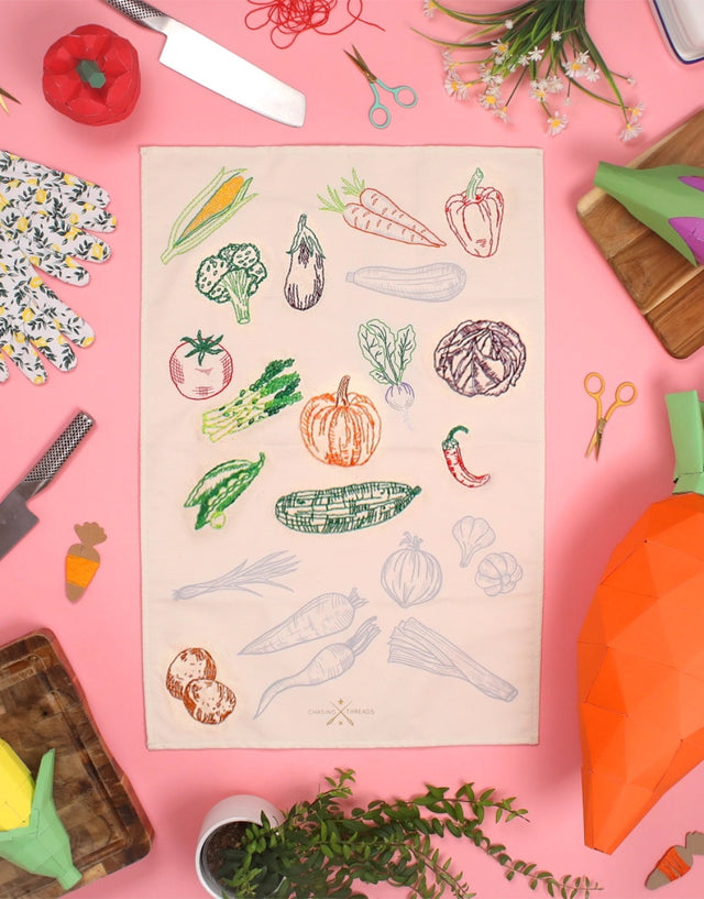Stitch Your Vegetables Tea Towel, Chasing Threads