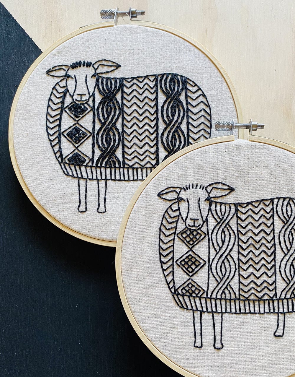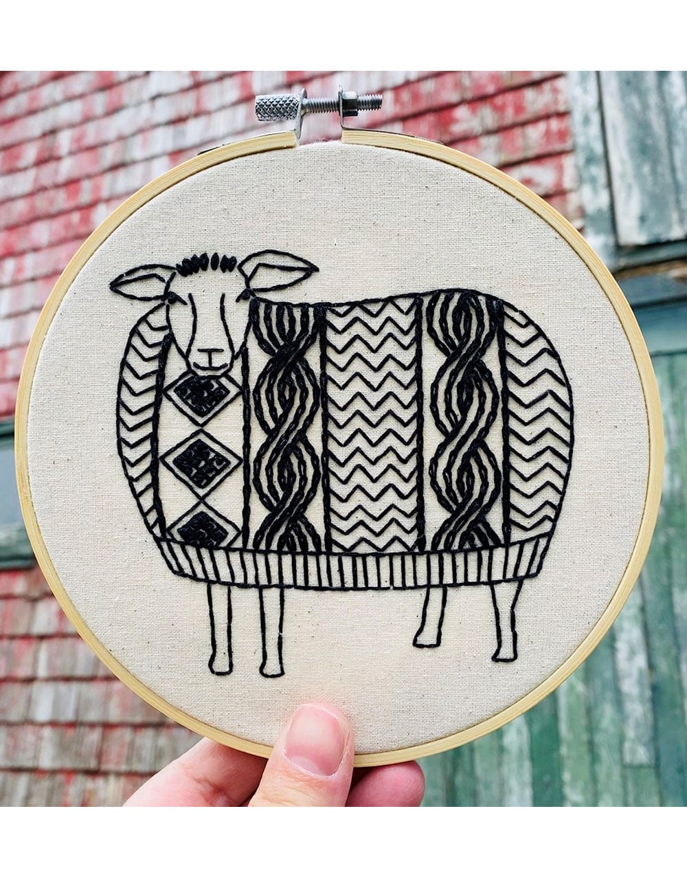 Sweater Weather combines the beauty of knitting with the art of embroidery. It's all about texture. You control the difficulty - keep it easy by using the most basic back stitch throughout, or ramp up the challenge with chain stitches, French knots, or more.