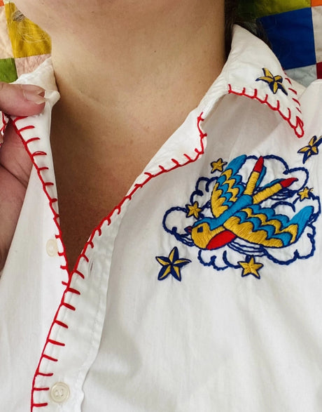 Embroidered Collar Kit Blue Flowers, Britney Pompadour