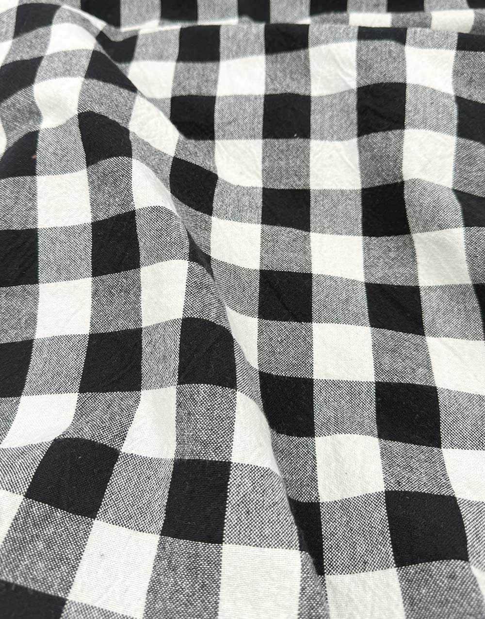 A beautifully simple black and white woven check that feels both modern and classic. Soft, breathable and with a natural floppy drape, this organic cotton is perfect for relaxed shirts, dresses, aprons and table linen. Its clean check pattern brings understated style to any project, making it a versatile staple for your fabric collection.