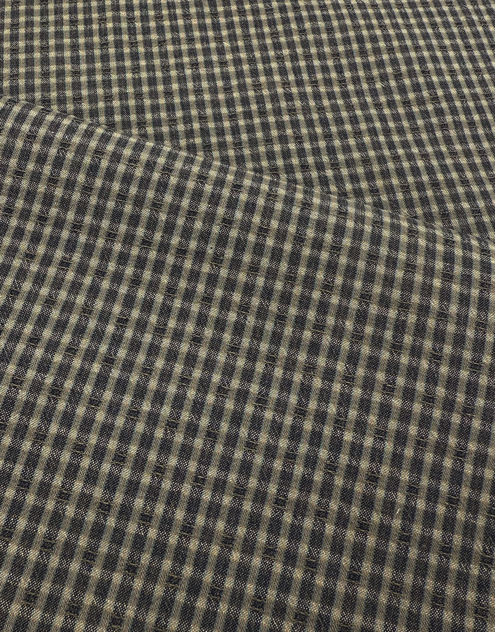 A beautifully understated Japanese gingham, this Tochio yarn-dyed cotton brings together soft grey and inky charcoal in a neat, rhythmic check. Look closely and you’ll notice the subtle woven texture running through the design - tiny irregular slubs and broken lines that give the fabric a handcrafted, tactile character. It’s classic gingham, but with that unmistakable Japanese attention to detail and quiet sophistication.