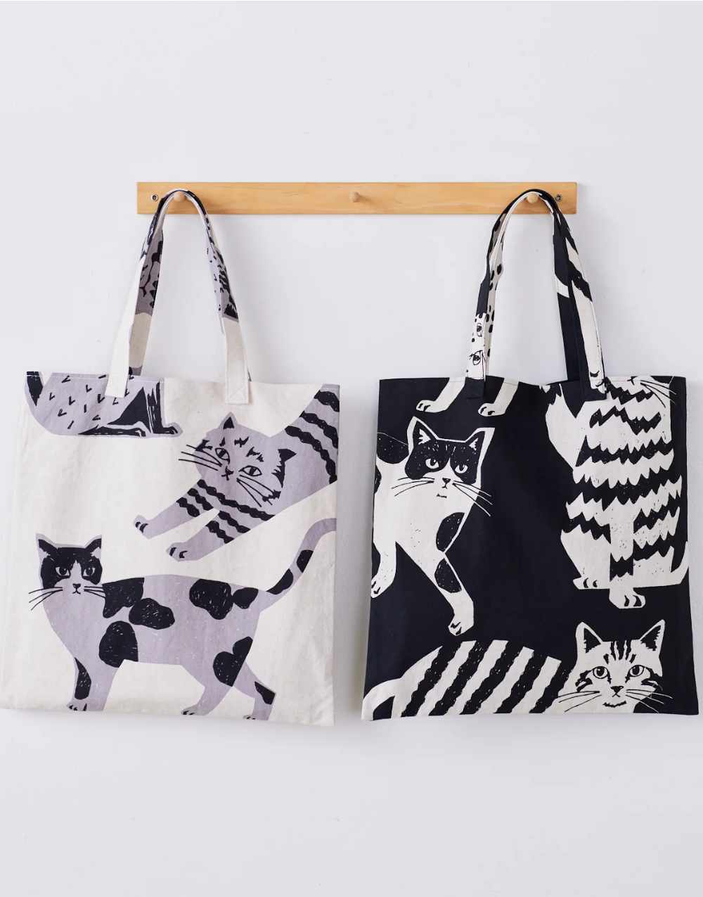 Love a fabric with personality? This large-scale cat fabric is just what you have been waiting for! The colour we have is the BEIGE version. The image of the bags is for size reference only.