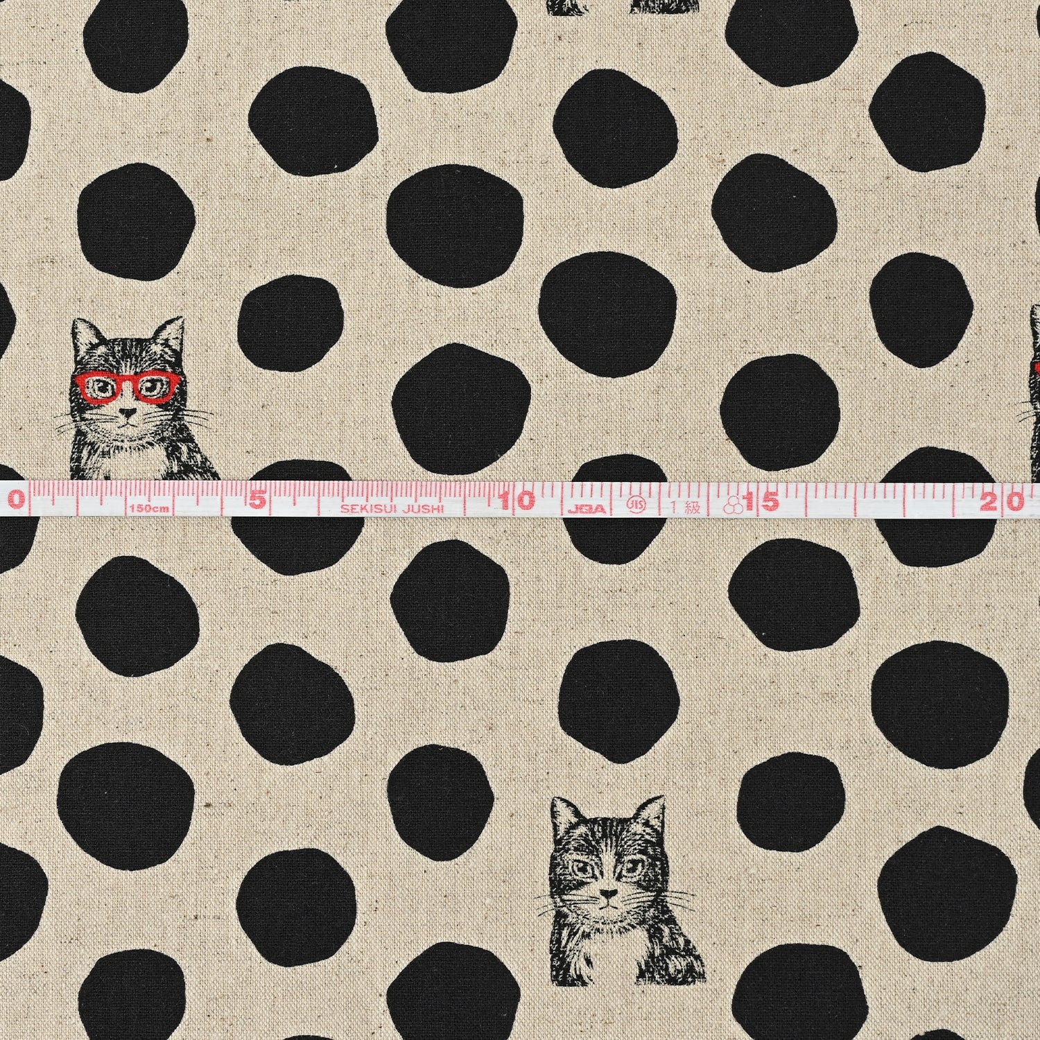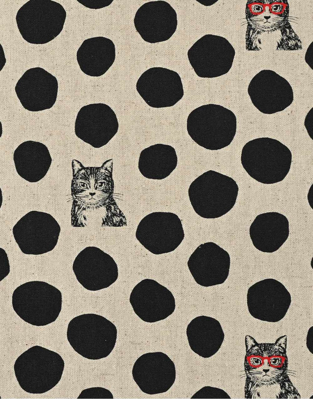 Black & Natural NekoNoe Cat Dot Japanese Cotton Linen Fabric, Echino