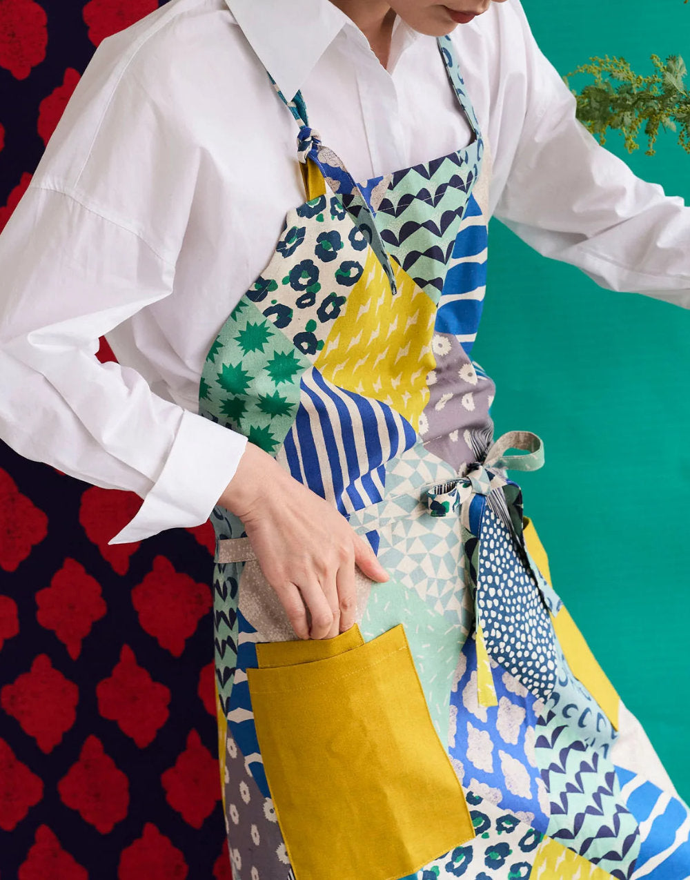 Add a fresh, modern twist to your projects with Echino’s Rhombus Cotton Linen Canvas. This lively design features a patchwork of rhombus shapes filled with playful patterns - from graphic stripes and scattered dots to geometric prints and abstract florals - all in a cool palette of blues, aquas, greys, and pops of lime.