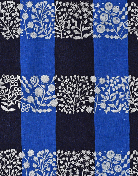 Blue Lattice and Metallic Silver Japanese Cotton Linen Fabric, Echino