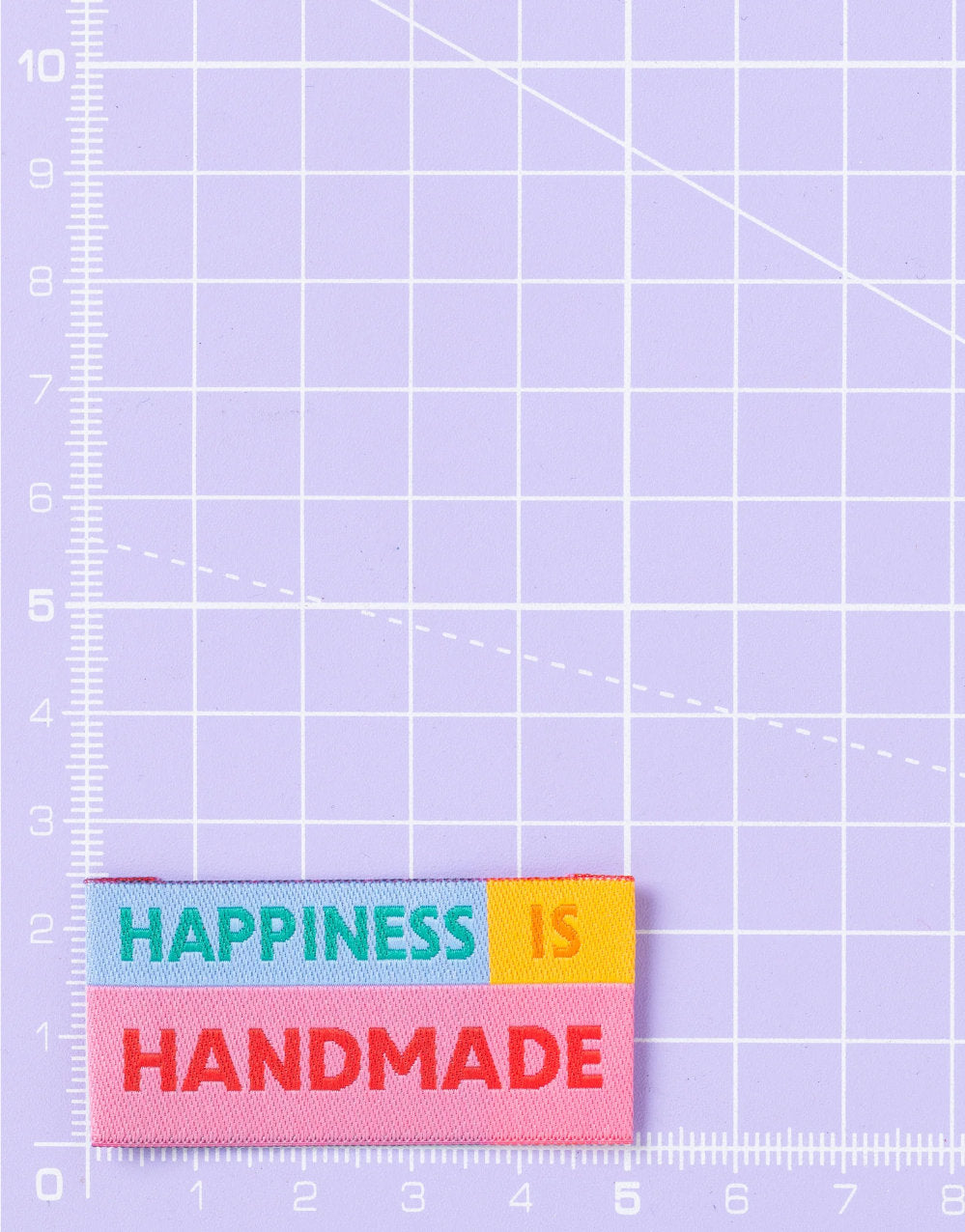 Celebrate the joy of making with our Happiness is Handmade sewing label. Bursting with bright, cheerful colour, it’s the perfect little finishing touch for quilts, garments, gifts and all those beautifully crafted projects that deserve to be shown off with pride.