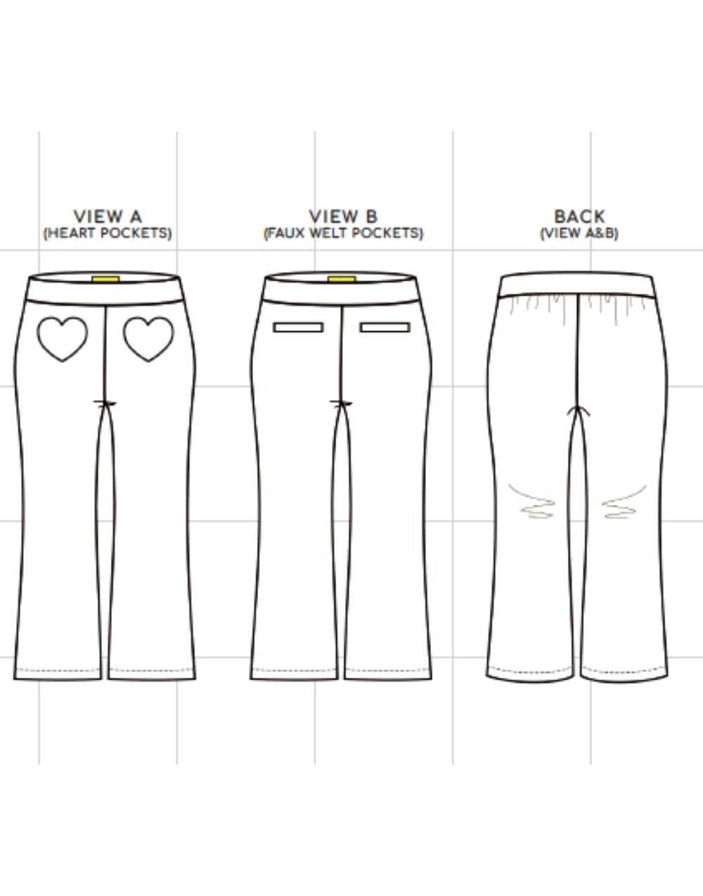 Fabric Suggestions: Medium weight stretch fabrics with no less than 20% stretch. Ponte Roma, French terry/loop back jersey or 8oz stretch denim are ideal. Cotton based jerseys would also give the trouser a legging feel.