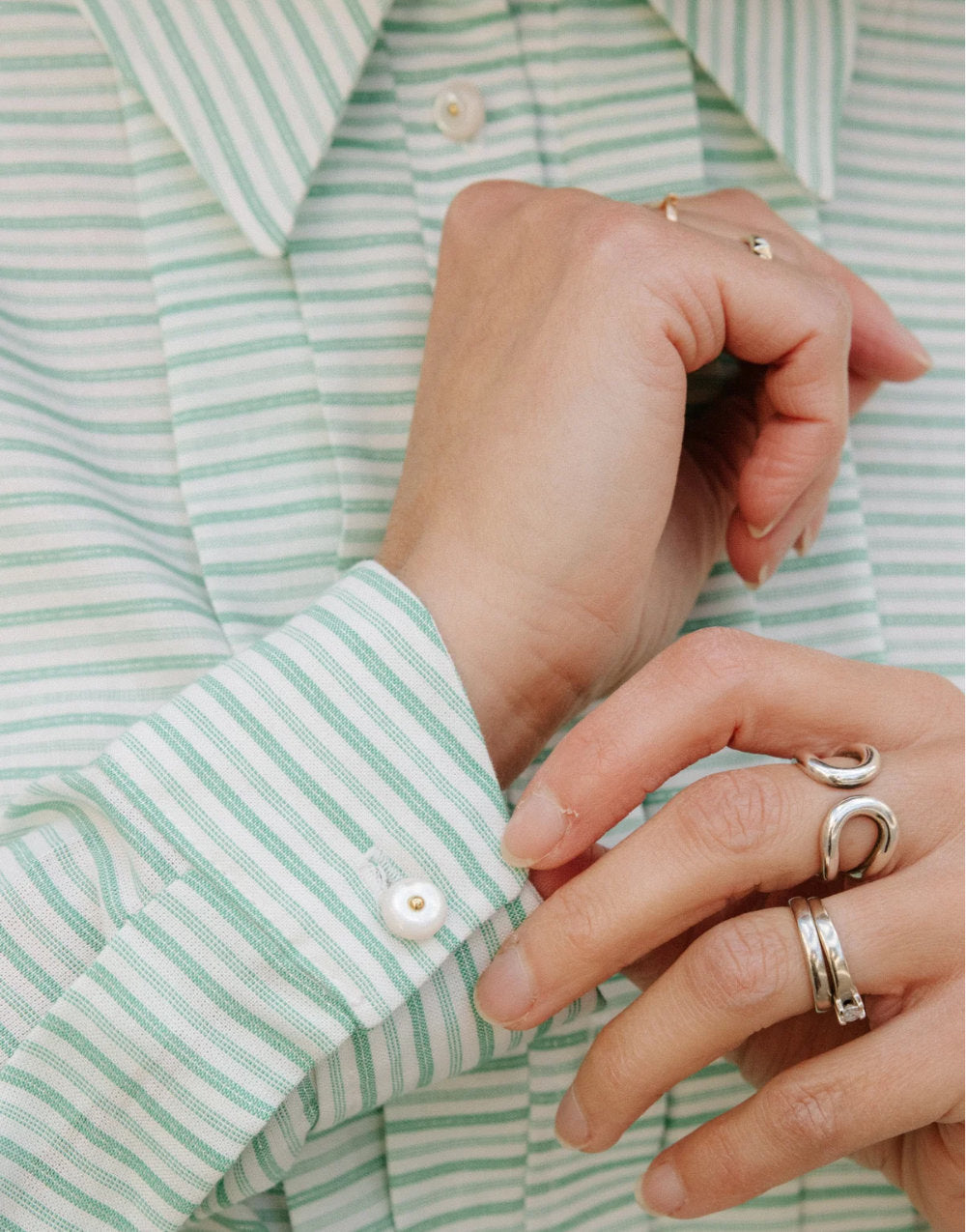Masculine elegance runs through the Maison Fauve wardrobe, and the Scala shirt captures it beautifully with a nod to effortless Italian style. A sharp, elongated collar sets the tone, paired with topstitched front pleats, a neat box pleat at the back and a straight, timeless cut that feels both relaxed and refined. Slightly dropped shoulders give it a modern ease, and for a cleaner, minimalist finish, there’s also a collarless option.