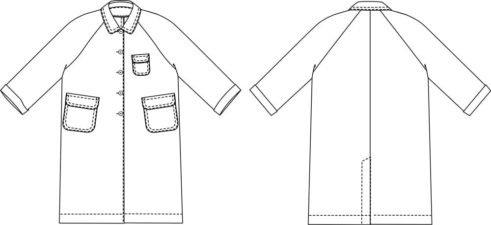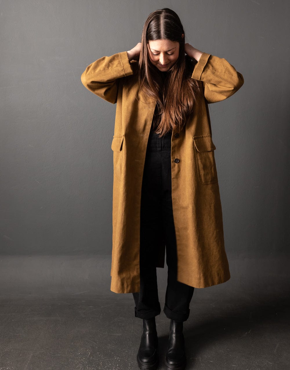 Suggested fabrics: Dry oilskin, oilskin, mid – heavyweight linens, 7 – 12oz denim, wool corduroy, cotton twills or canvas. A heavier weight cloth will result in a more structured coat.