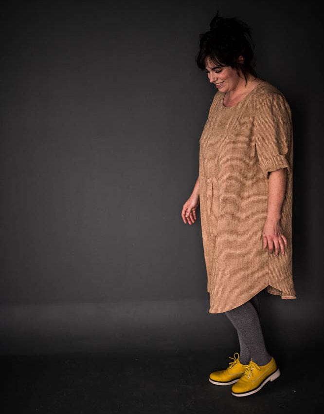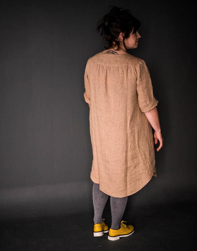 The Dress Shirt is a lightweight, versatile dress inspired by Grandpa’s shirt. It is a relaxed, classic cut to be worn loose and is absurdly comfortable. Includes a rolled up sleeve or a short sleeve.