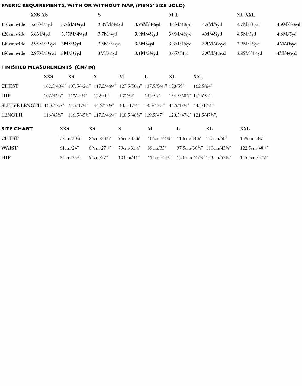 Sizing: Check your measurements against the pattern size chart for accuracy. For size Large and above, lengthen the waist tie at the lengthen/shorten line. This is a rough size conversion...