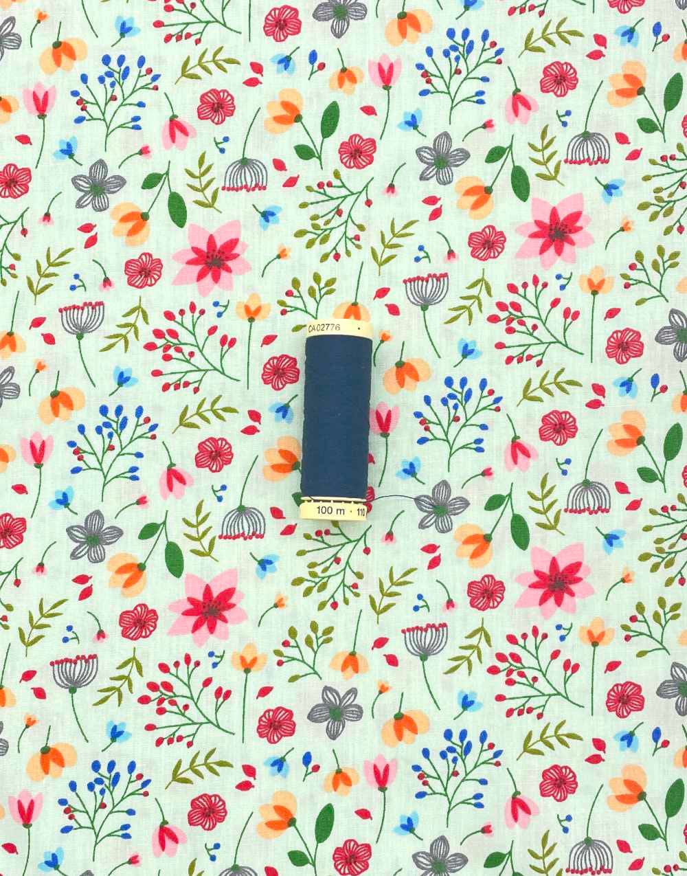 A summery floral on a pale aqua background. Just perfect for dressmaking, quilting and crafting.
