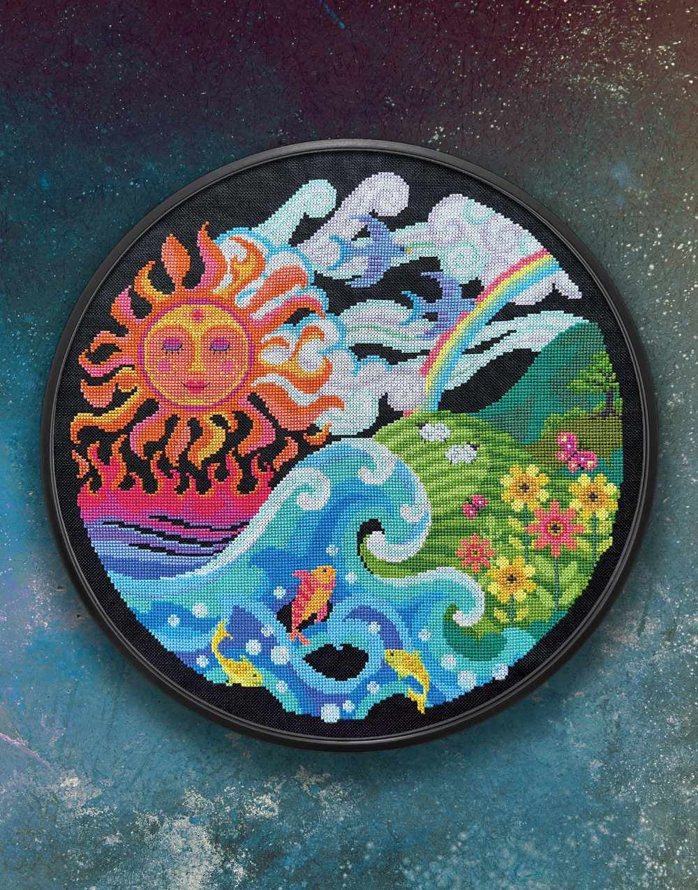 Stitch an epic tribute to the four elements with this breathtaking cross-stitch pattern by Satsuma Street! Inspired by earth, water, fire, and air, this design is a true work of art, blending vibrant colours and intricate details to capture the beauty of our natural world.