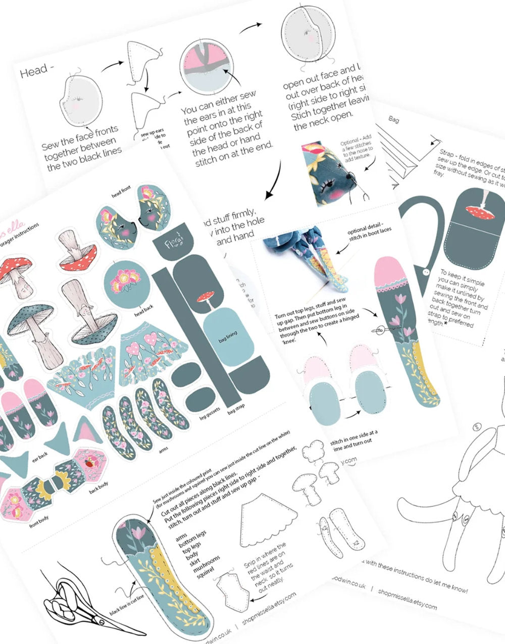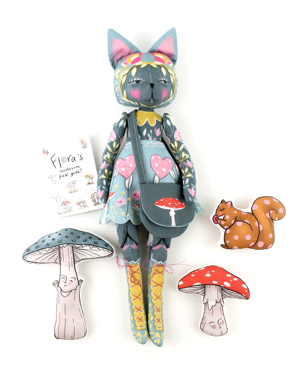 Meet Flora, the woodland forager you can sew yourself! This delightful DIY sewing kit lets you create Flora and her forest friends, a cheerful squirrel, a cluster of mushrooms, a tiny foraging book, and a little bag to collect her woodland finds. Everything you need to bring her to life (except stuffing and thread) is included in the kit.