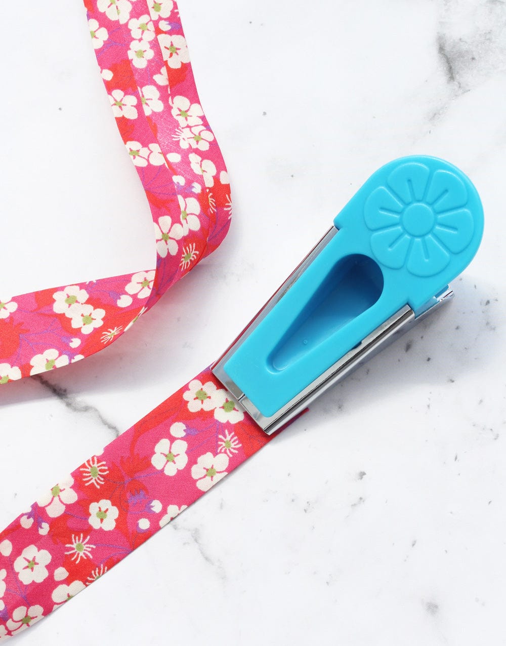 A whizzy tool for making bias binding, especially useful if you need bias binding in the exact colour or pattern of the material you're using. Every sewing box needs one!
