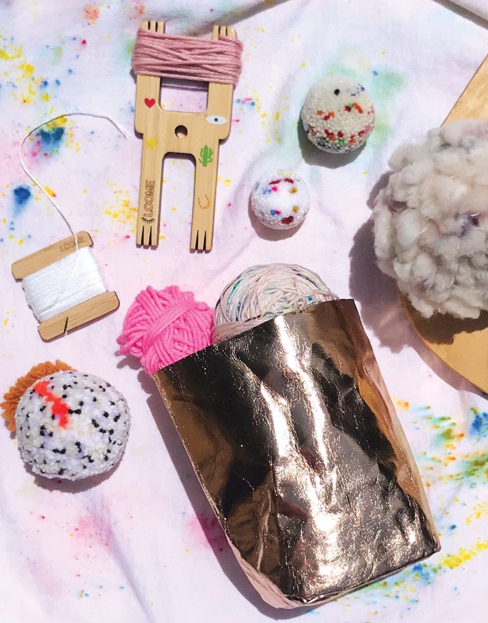 Essential for pom pom making - this floss helps you tie those tight middle ties that hold your pom pom together! A reusable wooden bobbin comes with 50' or 13 m of 6-ply floss is enough floss on this bobbin for 60 pom poms.