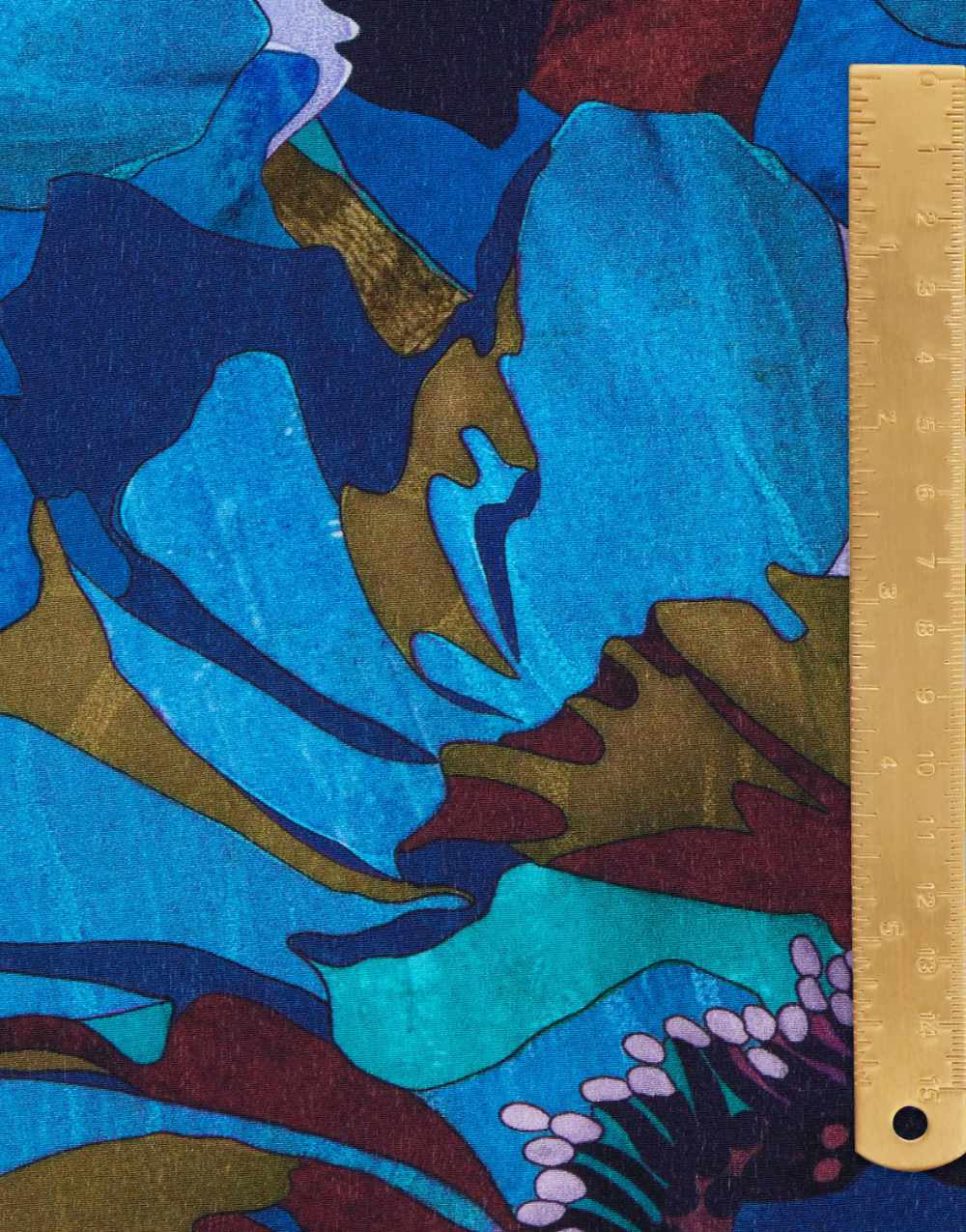 Exploring the flower as a vehicle for abstraction, this striking block coloured design was originally printed as a Liberty scarf in 1968. Dramatically cropped and zoomed-in, monumental peony petals create symphonies of contour and texture by revealing a fluid camouflage pattern.