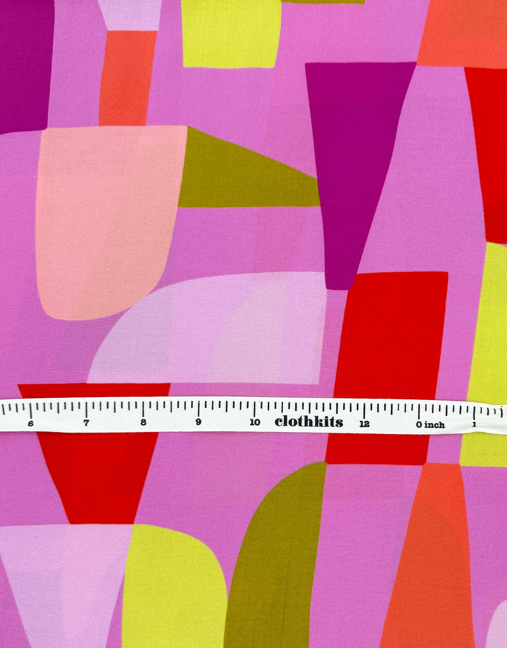 A vibrant and eye-catching fabric, the Bubblegum Pink Shape Shifter print features bold, abstract shapes in a joyful palette designed by the renowned Nerida Hansen. Set against a rich bubblegum pink background, the design bursts with dynamic forms in shades of hot pink, bright red, zesty lime green, soft peach, and warm tangerine. The overlapping shapes create a modern, artistic rhythm that brings a bold and playful energy to any project.