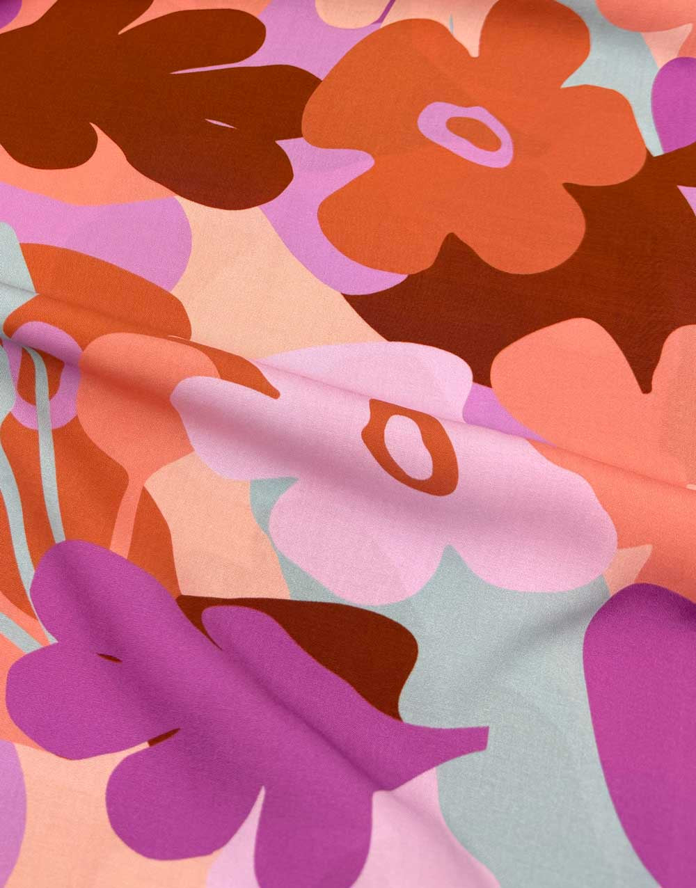Soft, earthy, and full of retro charm, the Dusky Pink Trail Run print by Nerida Hansen features bold, abstract florals in a warm palette of rust, peach, lavender, coral, mint, and deep mauve. The oversized shapes and playful layering give this fabric a distinctly vintage vibe with a modern twist.