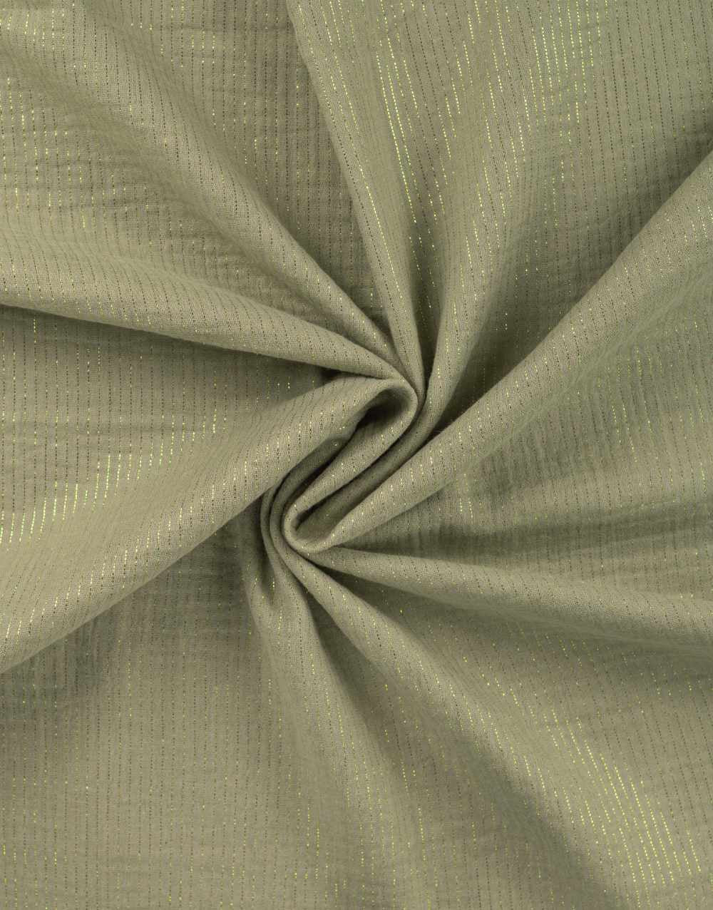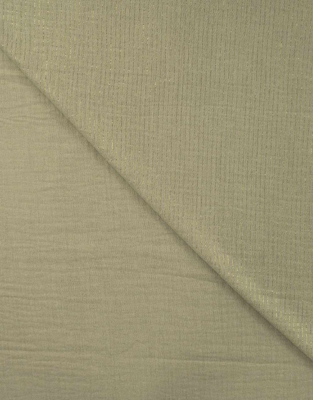 Khaki Metallic Stripe Cotton Muslin Fabric