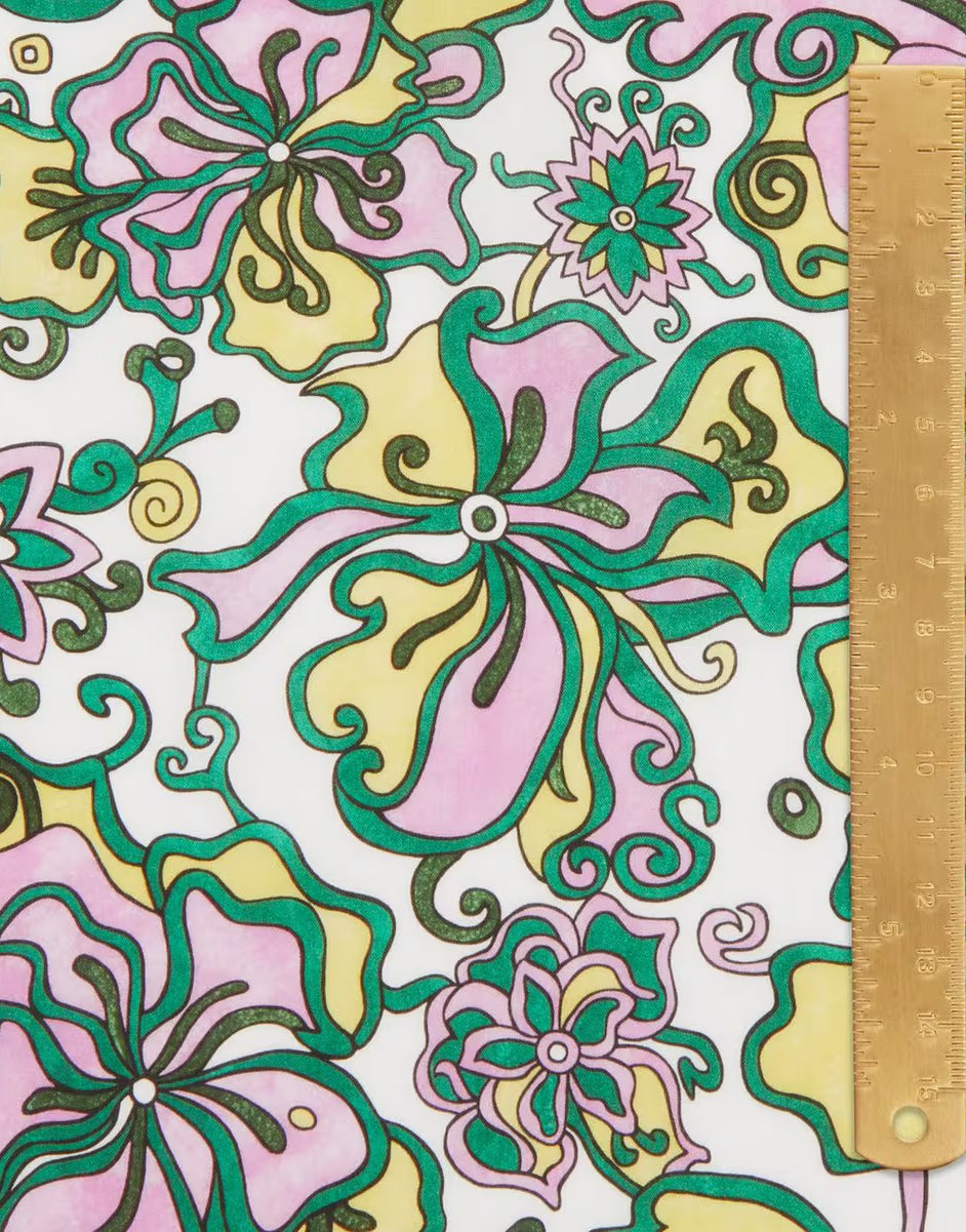 A floral frenzy of unexpected kaleidoscopic blooms dating from 1963, King’s Road delves into iconic Liberty prints worn by supermodels of the 1960s, such as Twiggy and Jean Shrimpton.