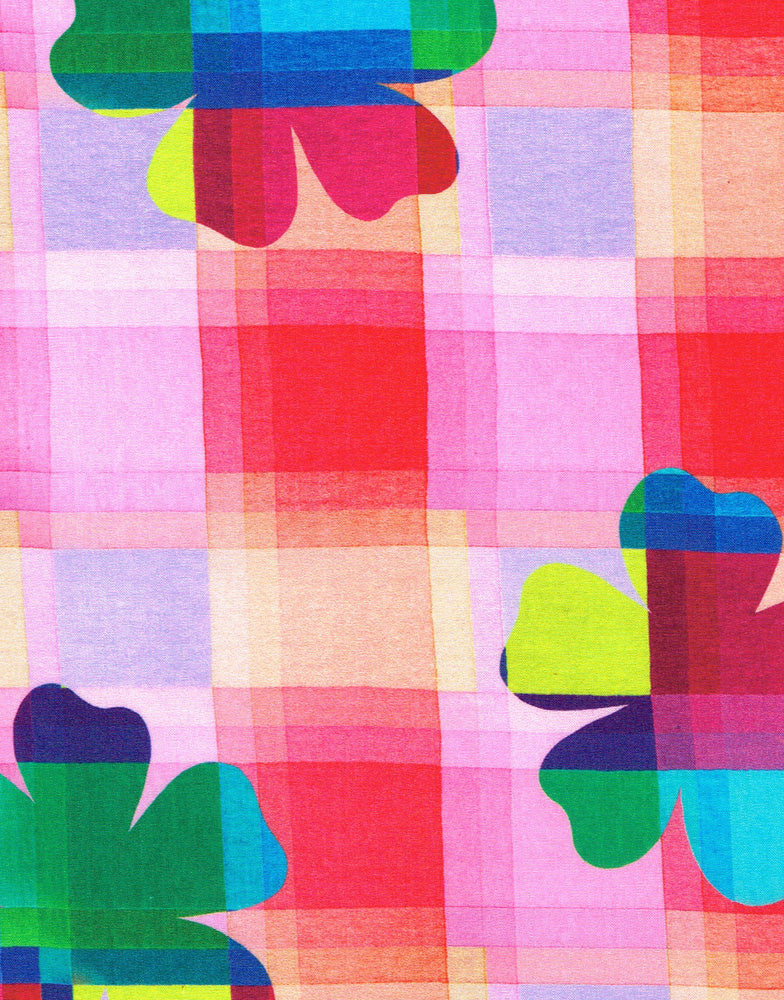 A nod to the hand-carved wooden Tudor roses that adorn the interior of the Liberty store, hand painted stripes and briar rose silhouettes are overlayed to create a floral check.