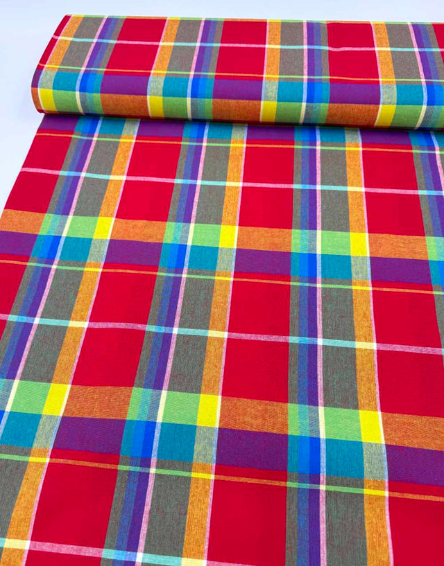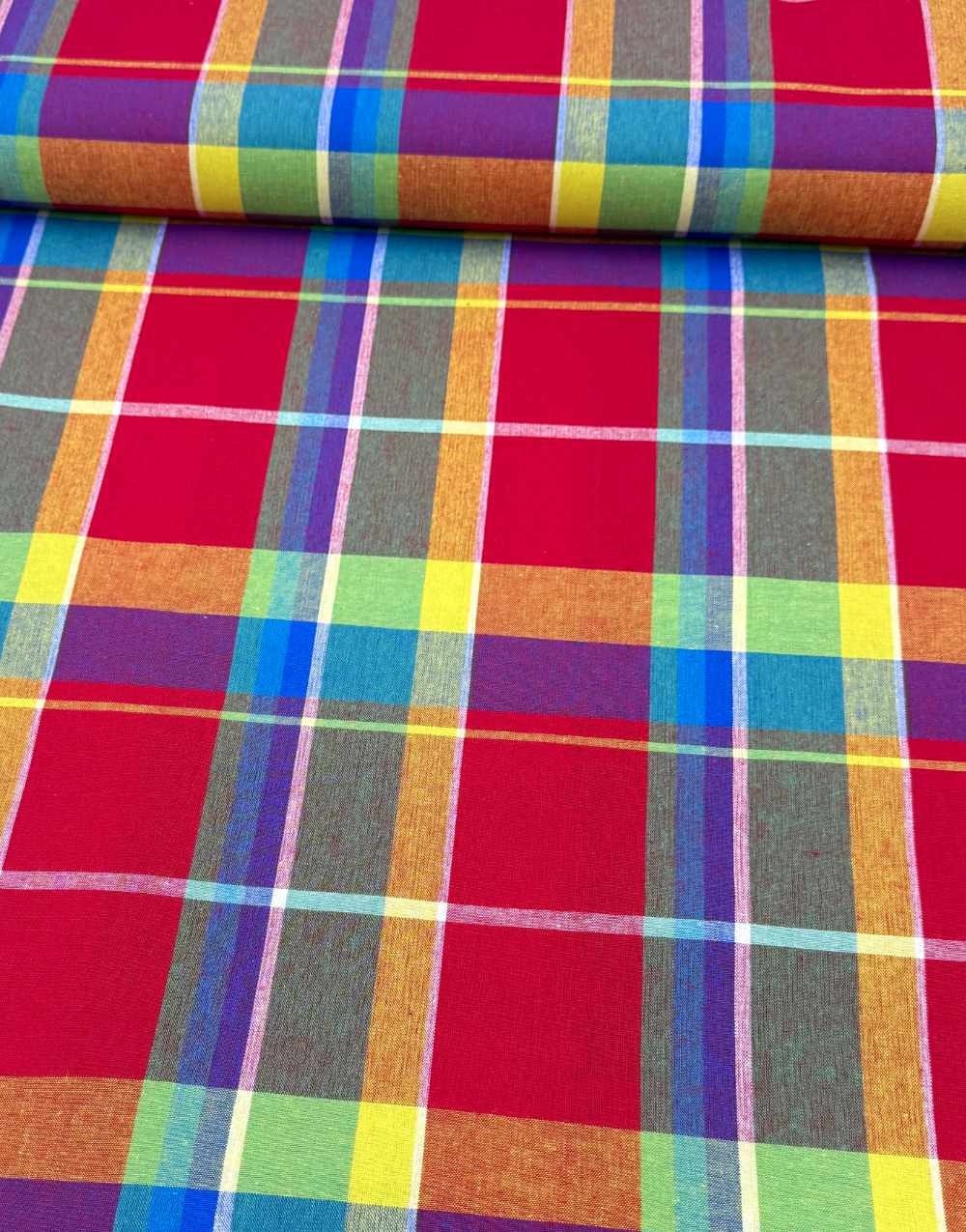 Turn up the heat with Spice Market, a vibrant handwoven Madras cotton featuring rich reds, saffron yellows, chilli oranges and pops of green, blue and violet. It's a feast of colour and texture, ready to be transformed into punchy shirts, summer dresses, or joyful kidswear.