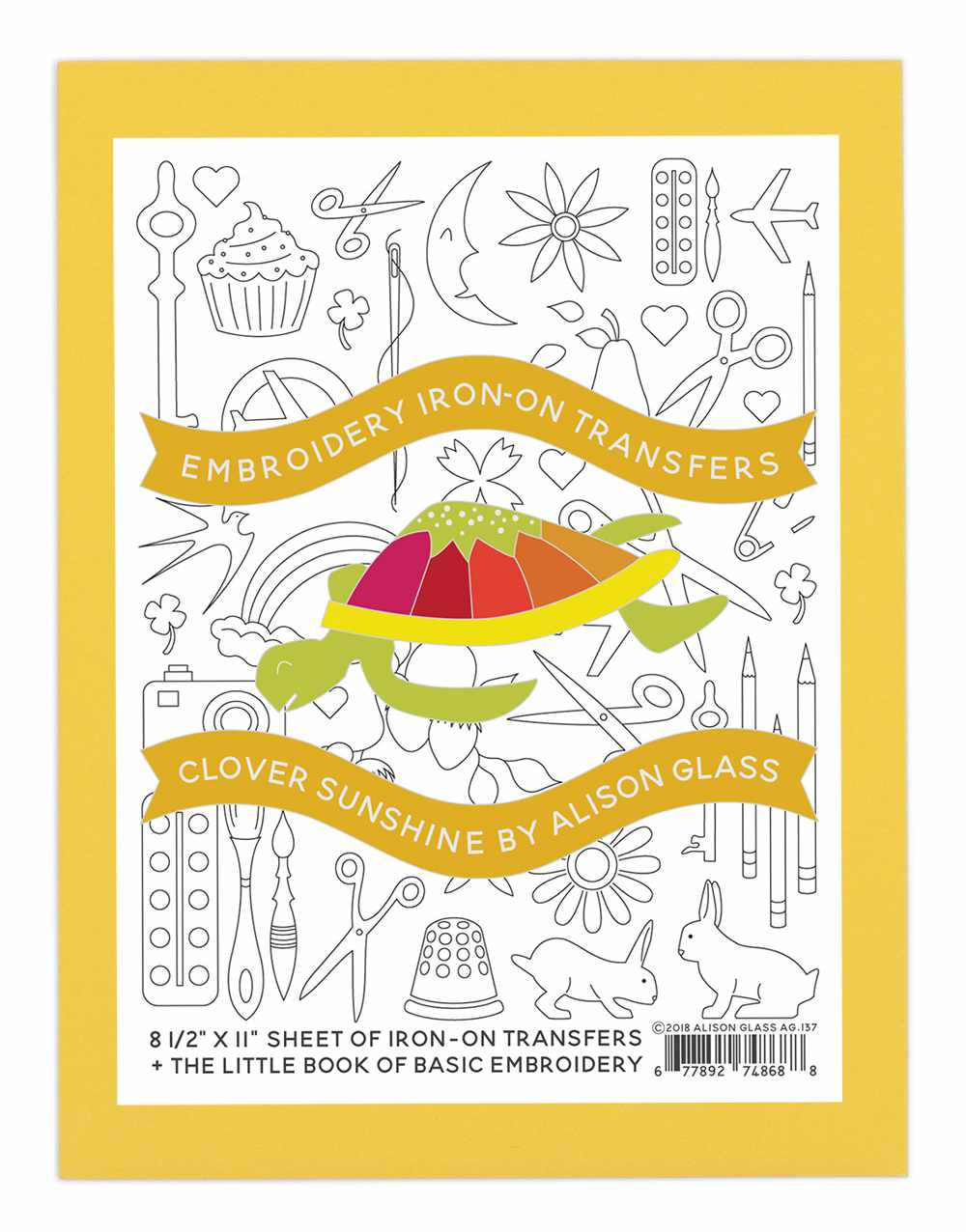 Inside, you’ll find an 8½" x 11" sheet of iron-on transfers alongside The Little Book of Basic Embroidery, a handy guide packed with easy-to-follow tips and stitches. Everything is neatly tucked into a coordinating envelope, making it a lovely gift for a maker or a bright addition to your own embroidery stash.