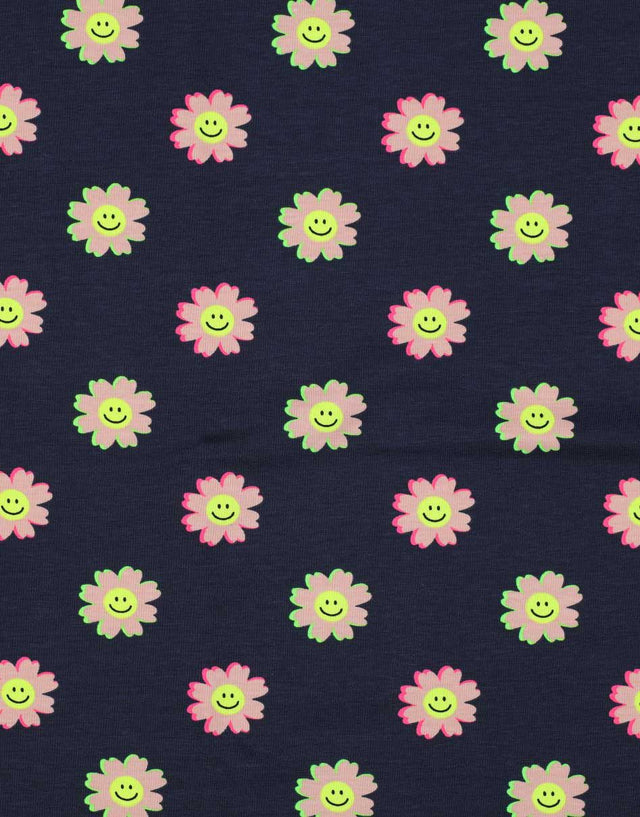 Neon Happy Flowers Navy Cotton Jersey Fabric