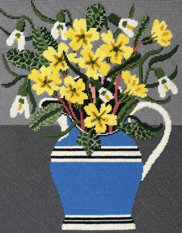 Depicting a charming jug of primroses in soft yellows and greens, this tapestry makes a joyful and satisfying project. It sits beautifully alongside the other designs in the Pitcher Posy series - Helleborus, Orange Dahlia and Burgundy Dahlia.