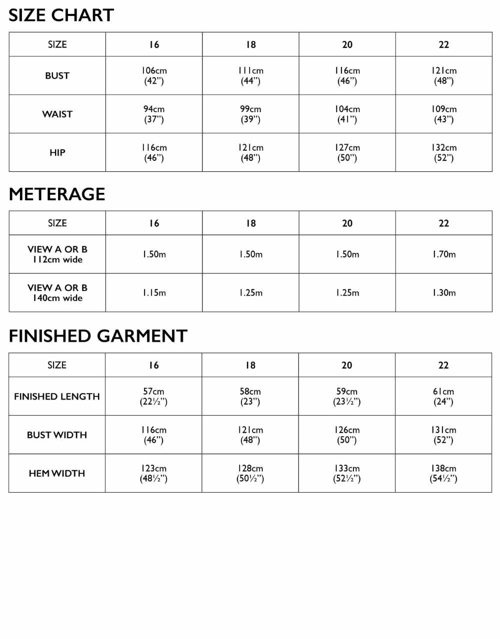 See the FIND YOUR SIZE tab for fabric requirements.