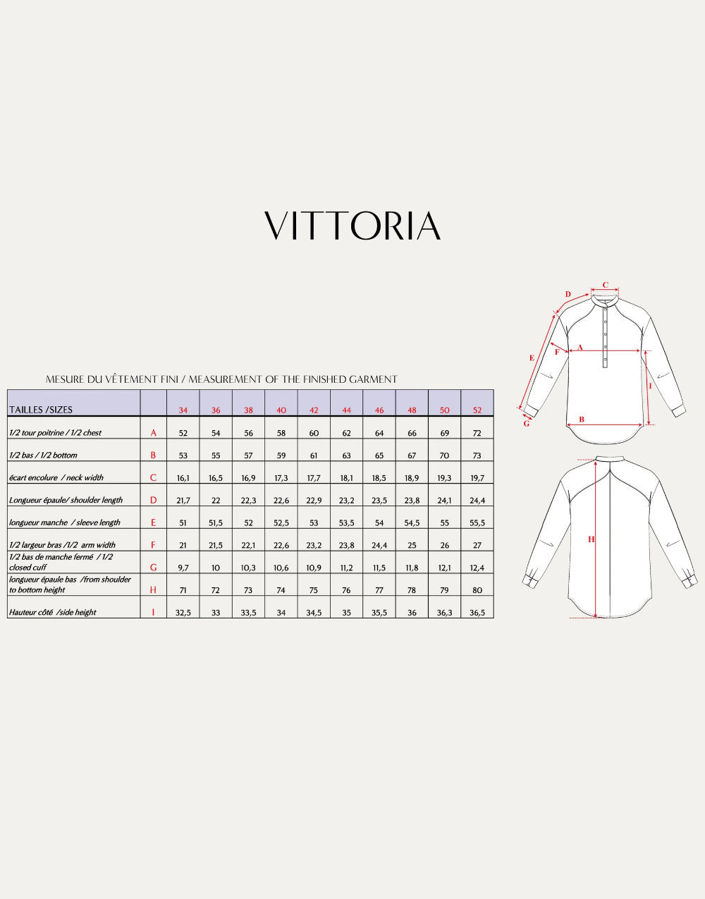 Vittoria Shirt Paper Sewing Pattern, Maison Fauve