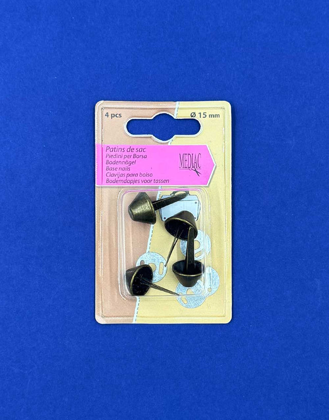 Base Nails for Bag Making, 15mm Antique Brass (Pack of 4)